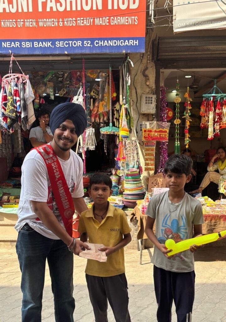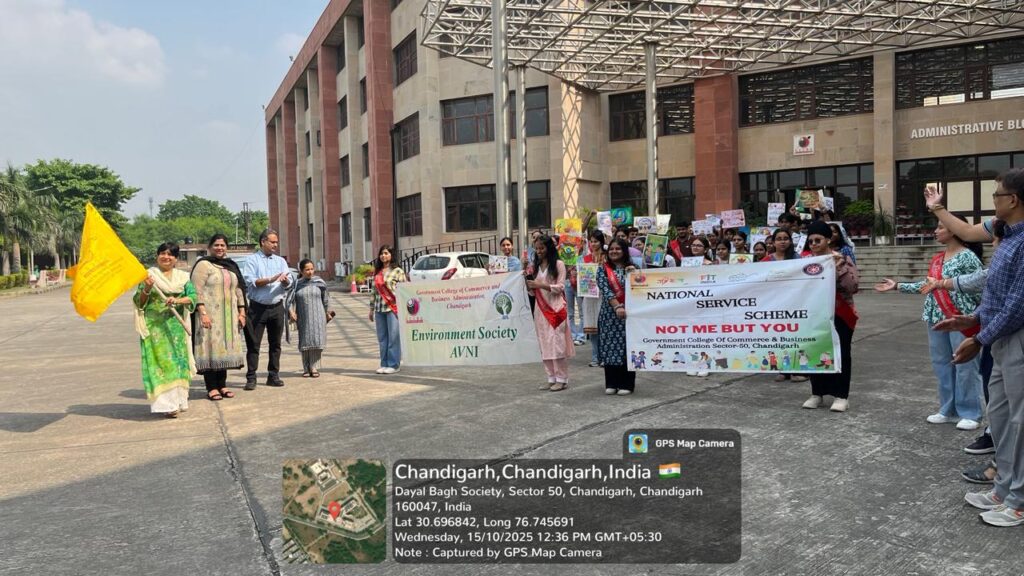 The NSS Units of Government College of Commerce and Business Administration (GCCBA), Sector-50, Chandigarh, marked Diwali 2025 with a compassionate outreach initiative in their adopted village, Kajheri. Volunteers from NSS donated essential items such as biscuits, socks, stationery, chocolates, soaps, handwash sachets, and traditional diyas to the residents of the Kajheri slum area. This thoughtful gesture aimed to spread festive cheer while promoting the values of sustainability and inclusivity through a “Green Diwali” celebration.