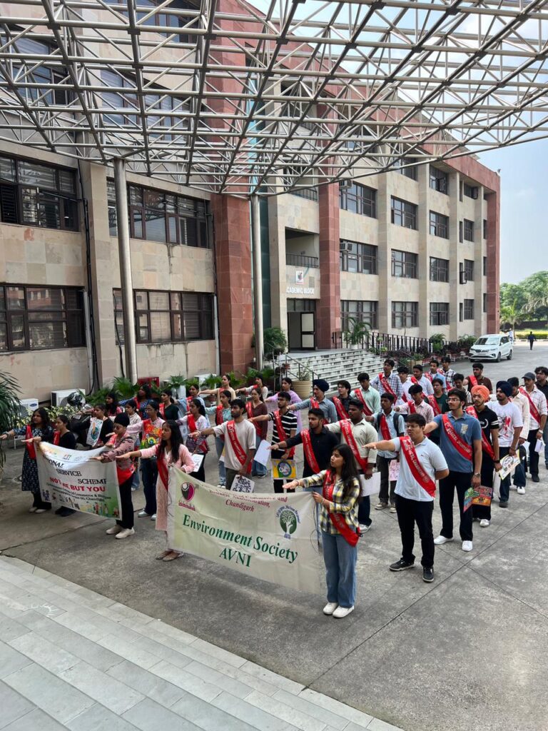 To further amplify the message of environmental responsibility, NSS, in collaboration with the Environment Society–Avni, Eco Club, and Bal Sarthi Club, a poster-making competition and an anti-cracker rally were organized. The rally, flagged off by Principal Prof. (Dr.) Nisha Aggarwal, Dean Dr. Sangam Kapoor, and Vice Principal Prof. (Dr.) Punam Agarwal, saw enthusiastic participation from 50 NSS volunteers, staff members, and students. Led by NSS Programme Officers Dr. Yogesh, Ms. Aanchal Malik, and Dr. Renuka Mehra, the rally moved through Sectors 50, 51, and 52, raising awareness about the harmful effects of firecrackers. Students carried vibrant posters and chanted catchy slogans like “Oye Kake No Pathake,” encouraging the community to embrace a cracker-less Diwali.